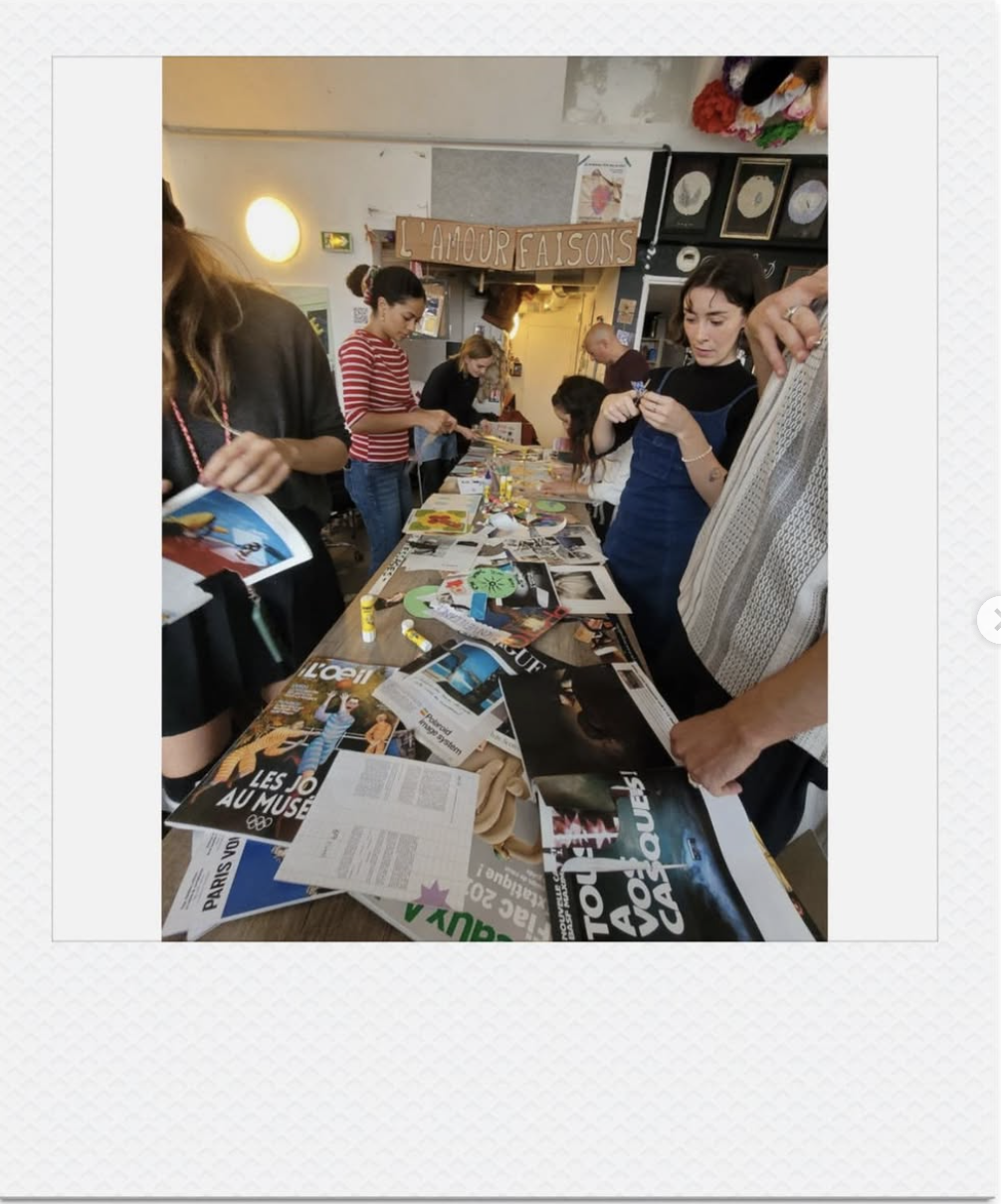 by recycled papers, colors, the will to cut, to keep what makes sense and to transform everything for a new greater perspective of oneself.