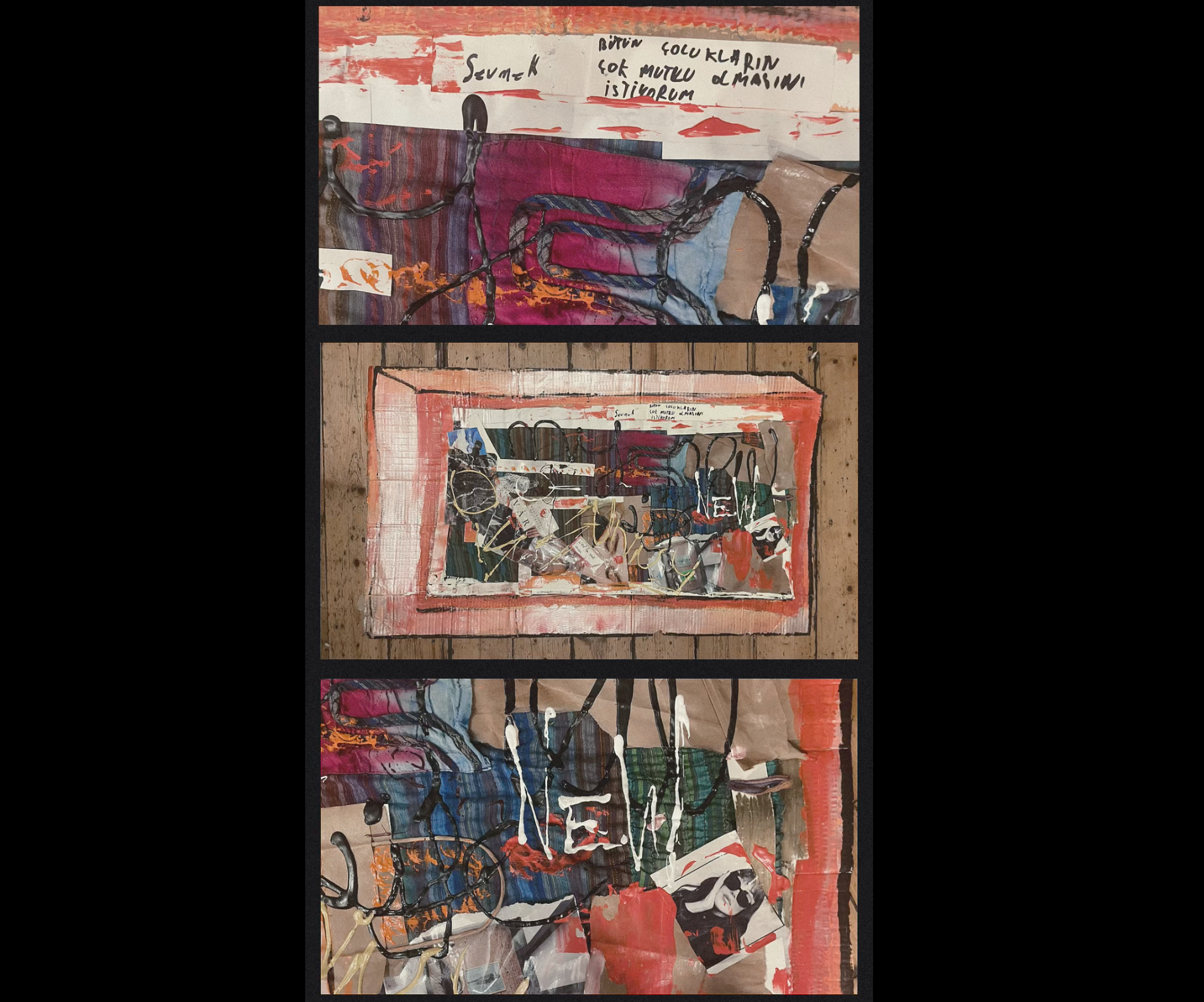by recycled papers, colors, the will to cut, to keep what makes sense and to transform everything for a new greater perspective of oneself.