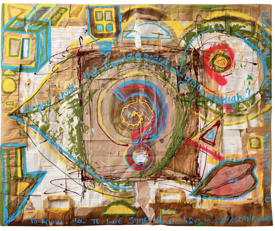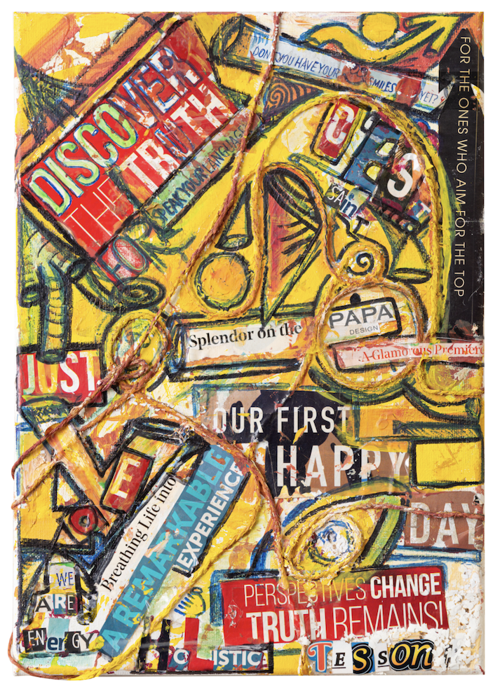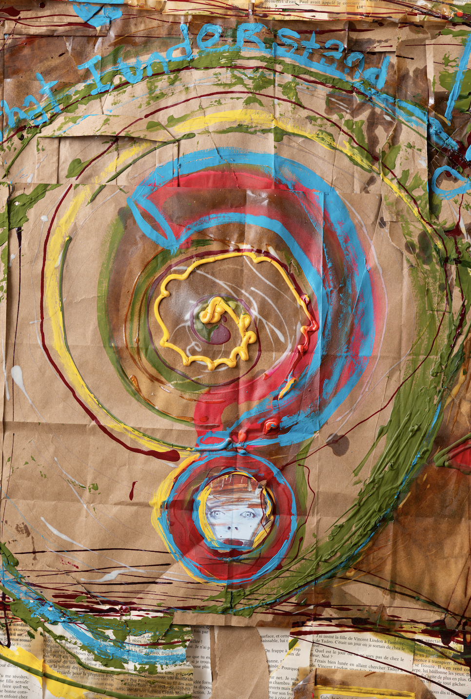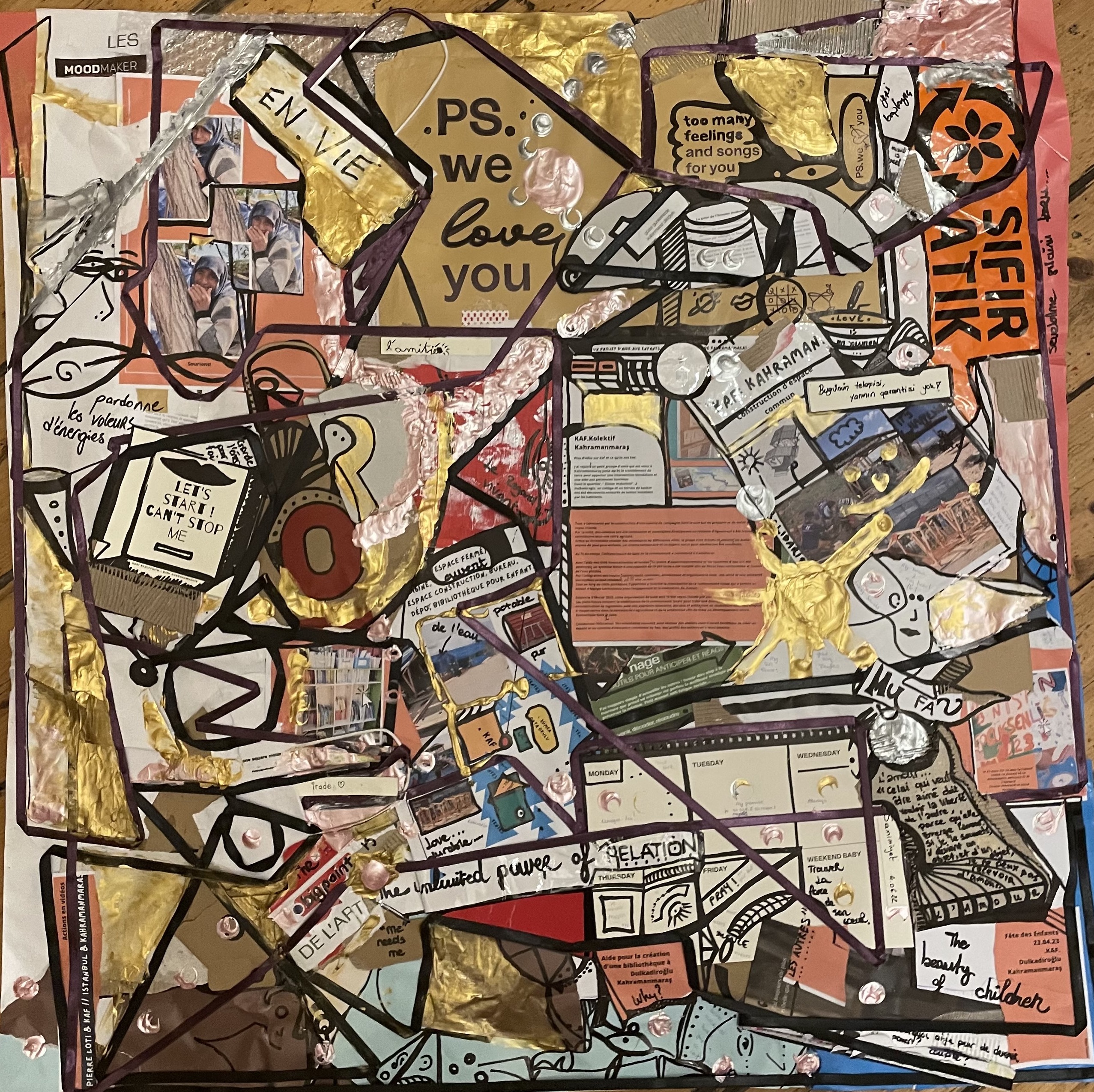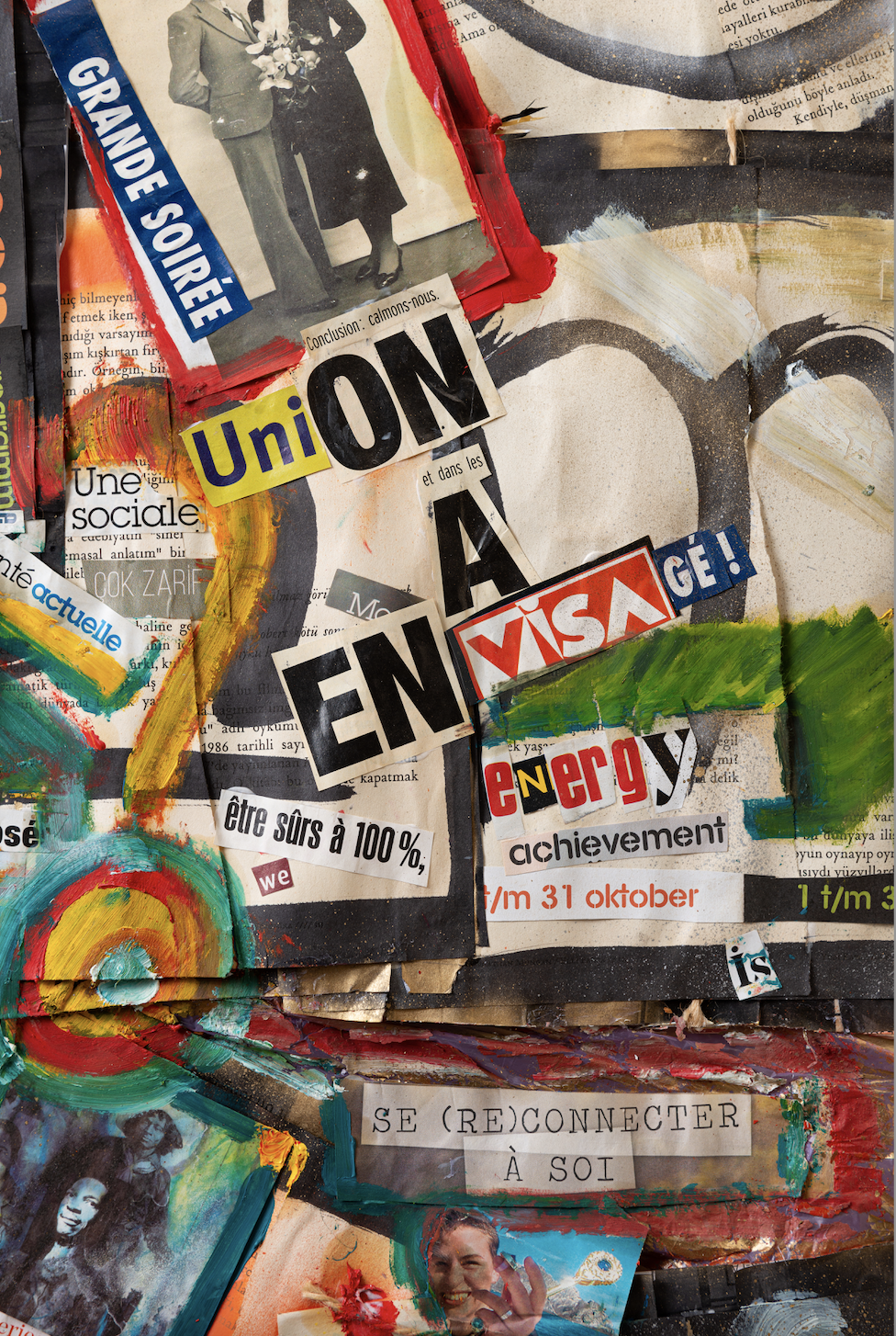 by recycled papers, colors, the will to cut, to keep what makes sense and to transform everything for a new greater perspective of oneself.